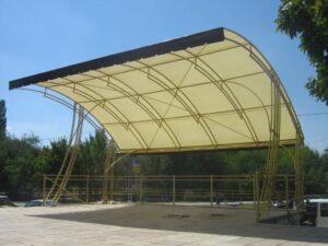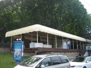 - Structuri din metal — cu montare și demontare (corturi, pavilioane, gherete).
