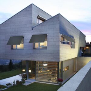 - Variantă cu casetă — pânza și mecanismul sunt complet protejați în aluminiu când este închisă.