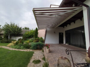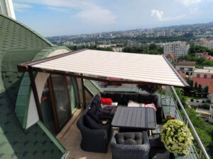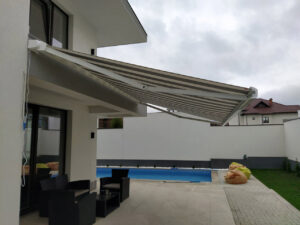 - Automatizare opțională: Marchiza poate fi dotată cu senzori de vreme care detectează soarele și vântul, deschizându-se automat la soare și retrăgându-se la rafale puternice de vânt. De asemenea, poate fi controlată de la distanță cu o telecomandă.