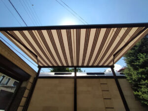 - Deschidere orizontală: Pânza se rulează între axul posterior și profilul frontal, iar sistemul de acționare (manual sau automat) permite o extindere și retragere ușoară.