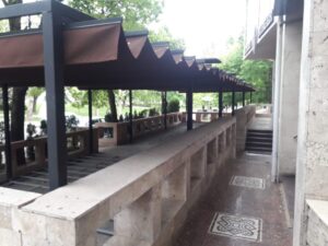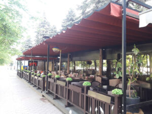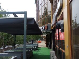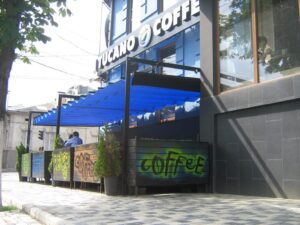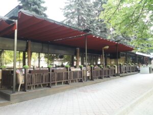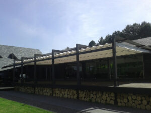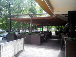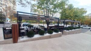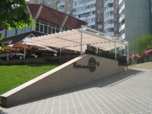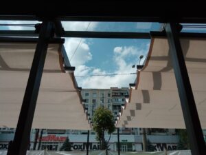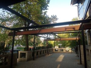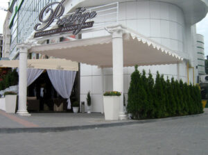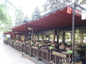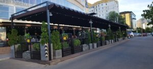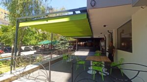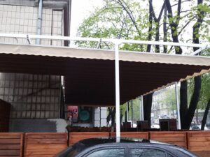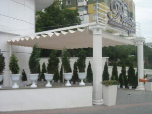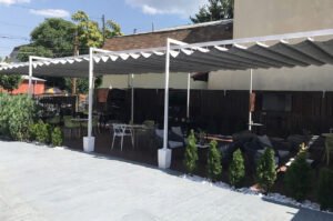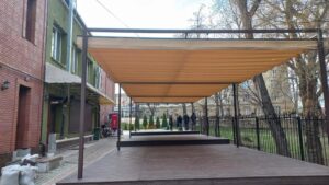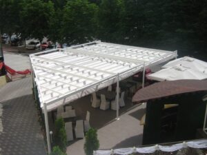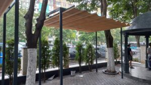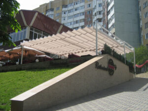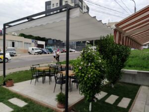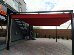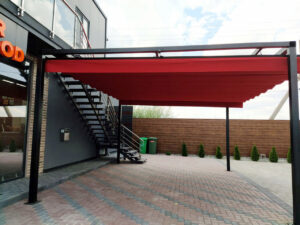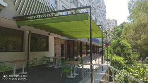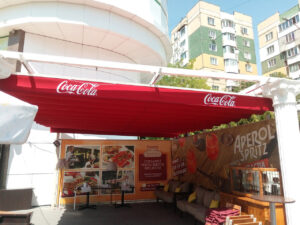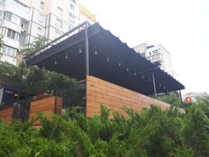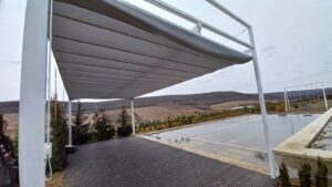 - Acoperă spații mari: Ideală pentru terase ample sau zone comerciale, datorită capacității de a umbri suprafețe extinse.