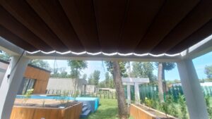 - Integrare ușoară: Poate fi montată cu ușurință în pergolele existente, fie că sunt din metal sau lemn.