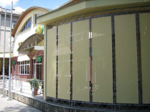 - Ecrane verticale, rulouri textile și sisteme de fațadă.